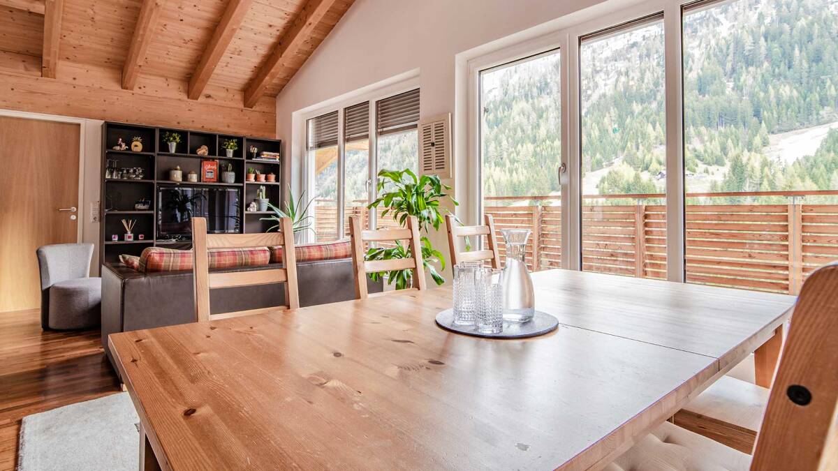 Auf Etage -1 befinden sich der Wohn- und Essbereich mit offener Küche. Hier starten Sie mit einem reichhaltigen Frühstück in den Tag, damit Sie voller Energie zu einem neuen Skitag im Ski Arlberg aufbrechen können. Nach einem Tag auf der Piste ist es besonders schön, ins Chalet Gabl zurückzukehren. Im Wohnzimmer können Sie gemeinsam entspannen, über den Skitag sprechen und ein Getränk geniessen. Wenn Sie noch mehr Erholung suchen, bietet der Wellnessbereich mit Sauna, Regendusche und Ruheraum alles, was Sie brauchen, um vollständig abzuschalten.