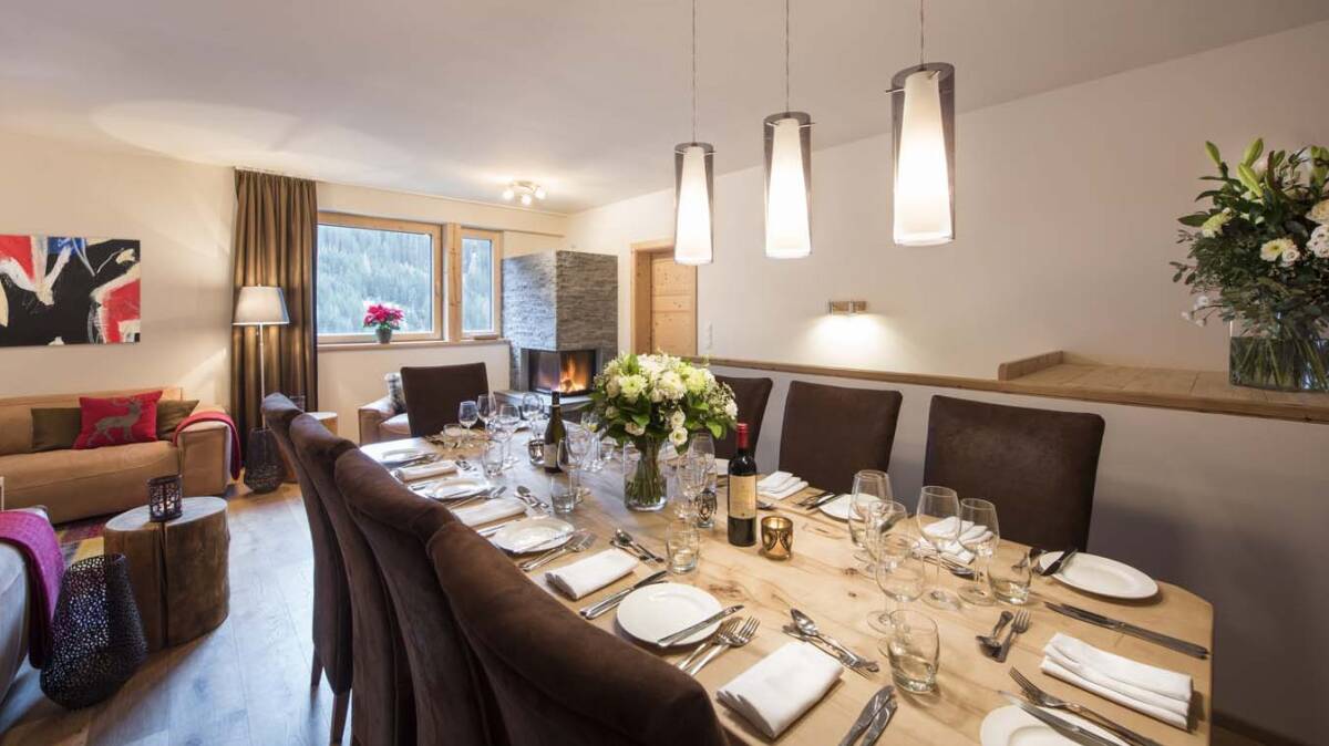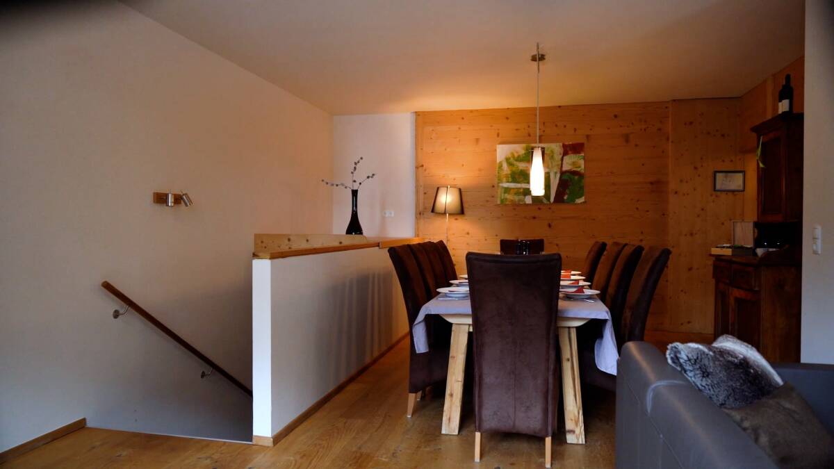 The interior is a perfect mix of Alpine and contemporary design. Wood and stone accents combined with comfortable furnishings. There is a nice warm fireplace in the living and dining room, which certainly contributes to the experience of this chalet. Perfect to enjoy with your company.