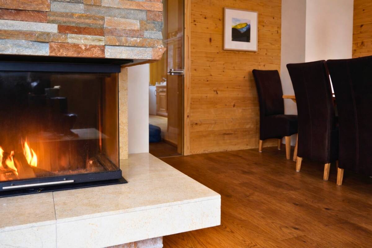 The interior of chalet Cirrus is a refined blend of Alpine charm and modern design. Warm wooden and stone accents are paired with comfortable furnishings, creating a welcoming and luxurious atmosphere. The living and dining area, complete with a cosy open fireplace, offers the perfect space to relax together after a day in the snow.