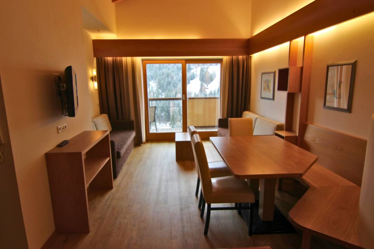 Thanks to its sunny south-facing location, many of Chalet Gretl's rooms offer stunning views of the surrounding mountains. Several rooms also have their own balcony, perfect for unwinding in the sun after an active day in the fresh mountain air. The Komperdellbahn, Sunliner, and Alpkopfbahn lifts are just 600 metres away and easily accessible via the underground metro, with a stop located only about 50 metres from the chalet.