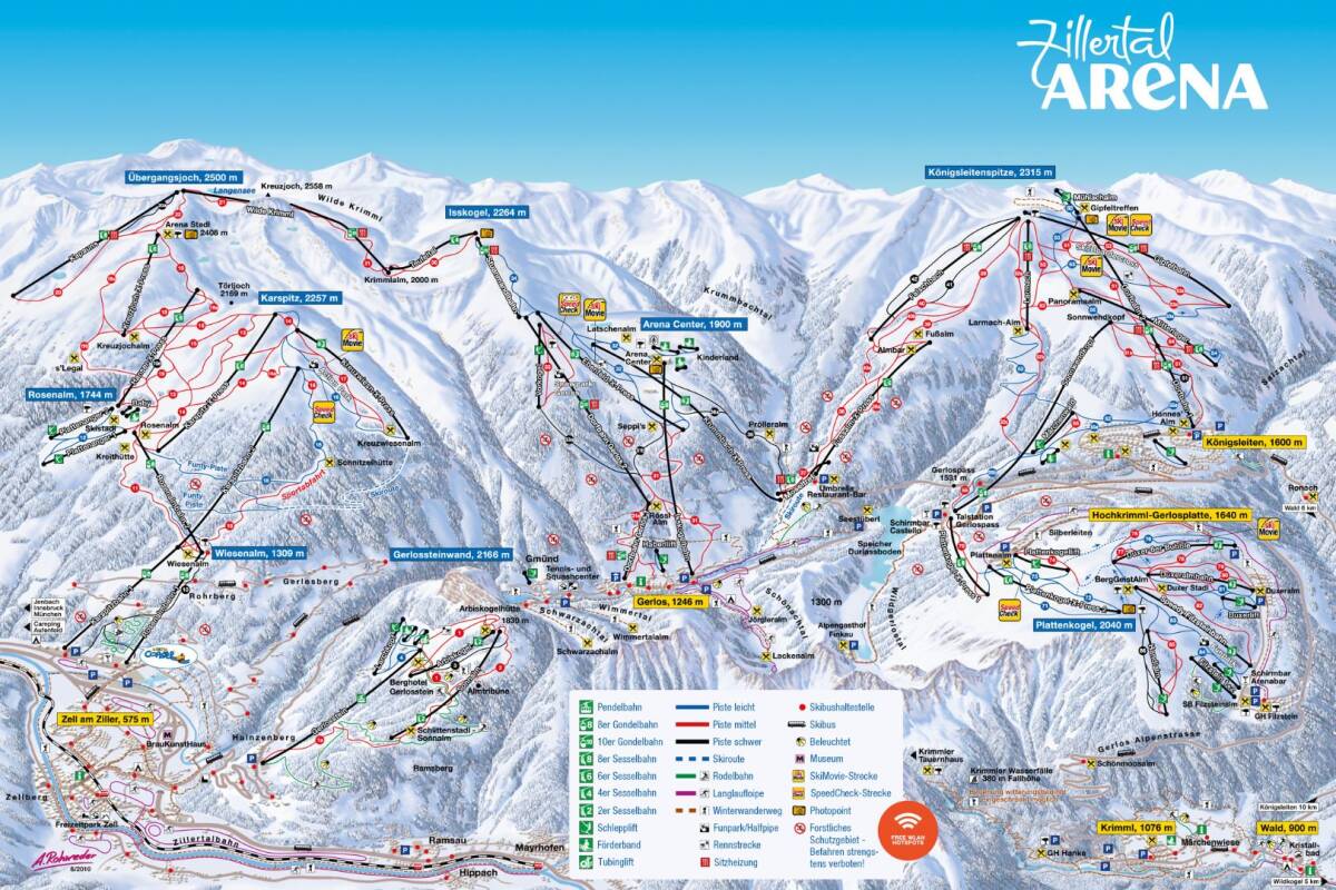 Het skigebied van Zillertal Arena (Gerlos, Königsleiten, Zell am Ziller, Wald im Pinzgau, Krimml en Hochkrimml) biedt voor elk wat wils. Het is ideaal voor beginnende skiërs, maar ook gevorderde skiërs zullen in Gerlos zeker genieten van een fantastische wintersport. Dankzij de hoogte van het skigebied en de moderne sneeuwkanonnen kunt u van december tot april genieten van optimale sneeuwcondities.