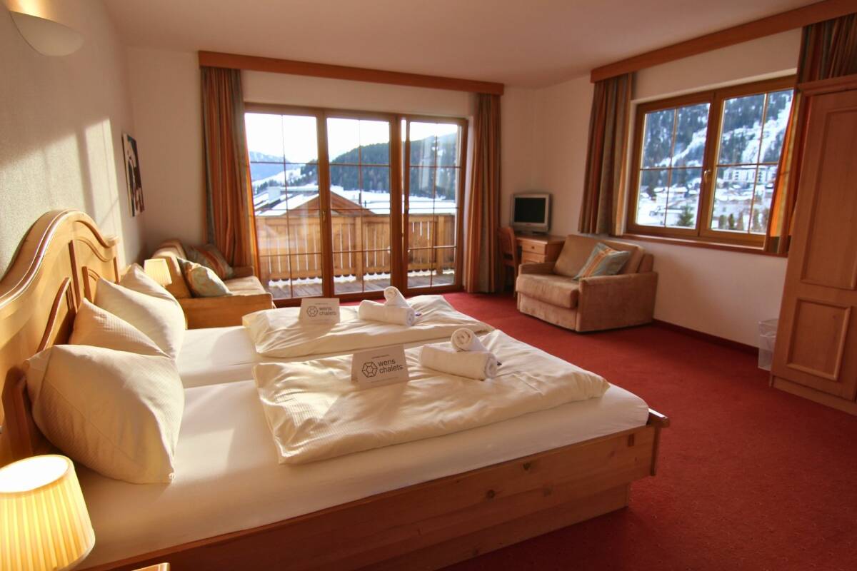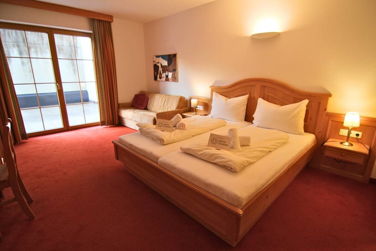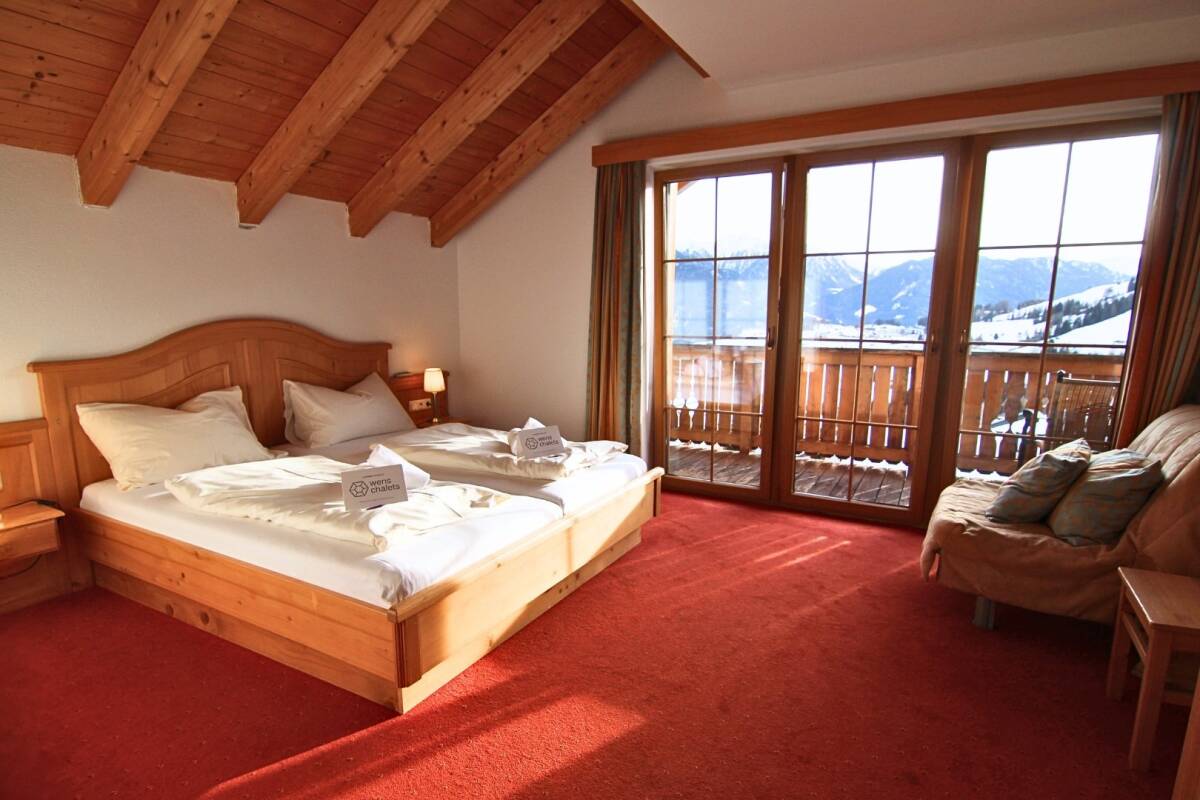 Chalet Kelle in Fiss beschikt over 12 ruime slaapkamers, allemaal voorzien van een eigen ensuite badkamer met bad en/of douche en toilet. Alle slaapkamers bieden een prachtig bergzicht en beschikken over een balkon of terras.