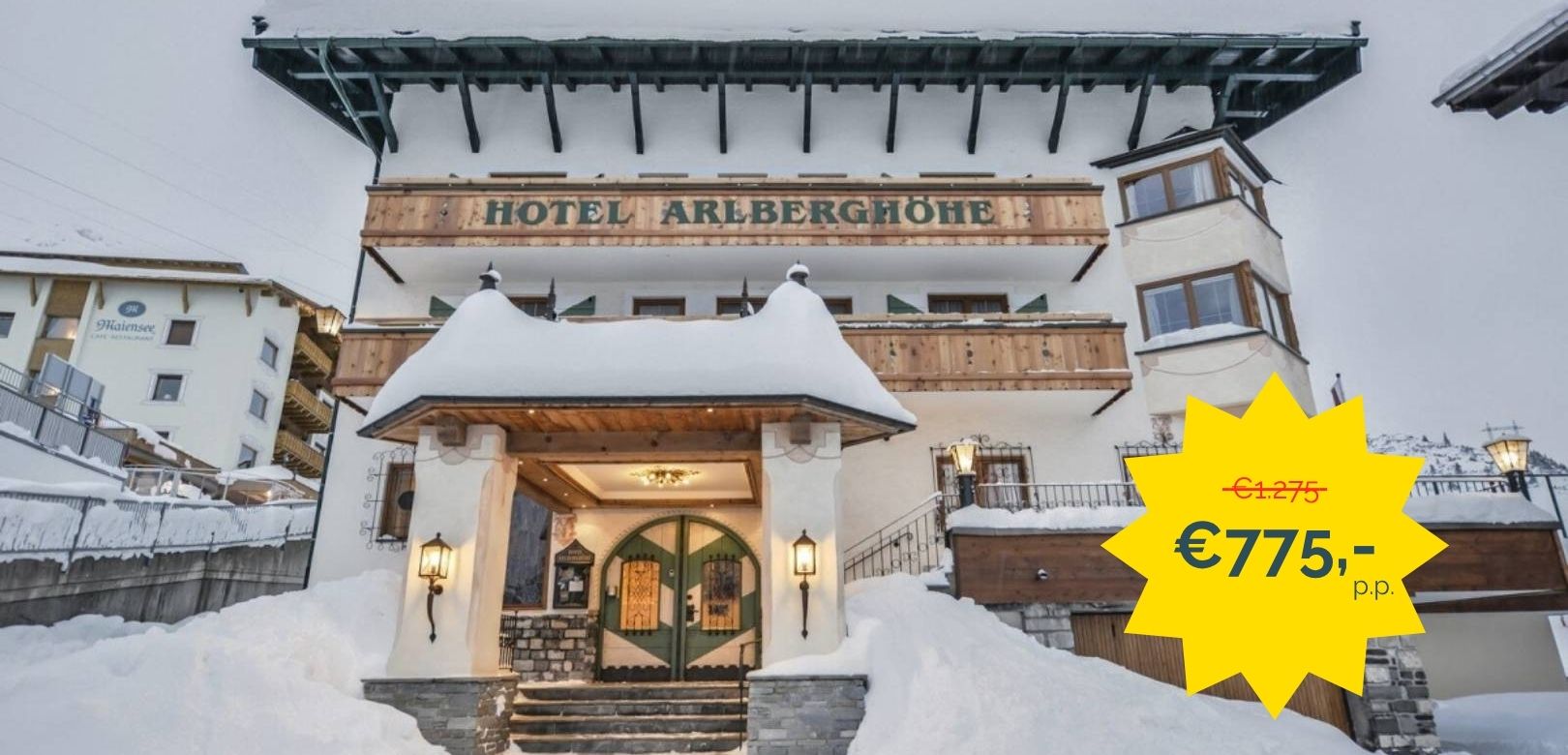 This anniversary offer is valid while availability lasts. The regular price is €1,275 per person per week, but in celebration of our anniversary, you can now enjoy a magical white Christmas for €775 per person for the entire week.